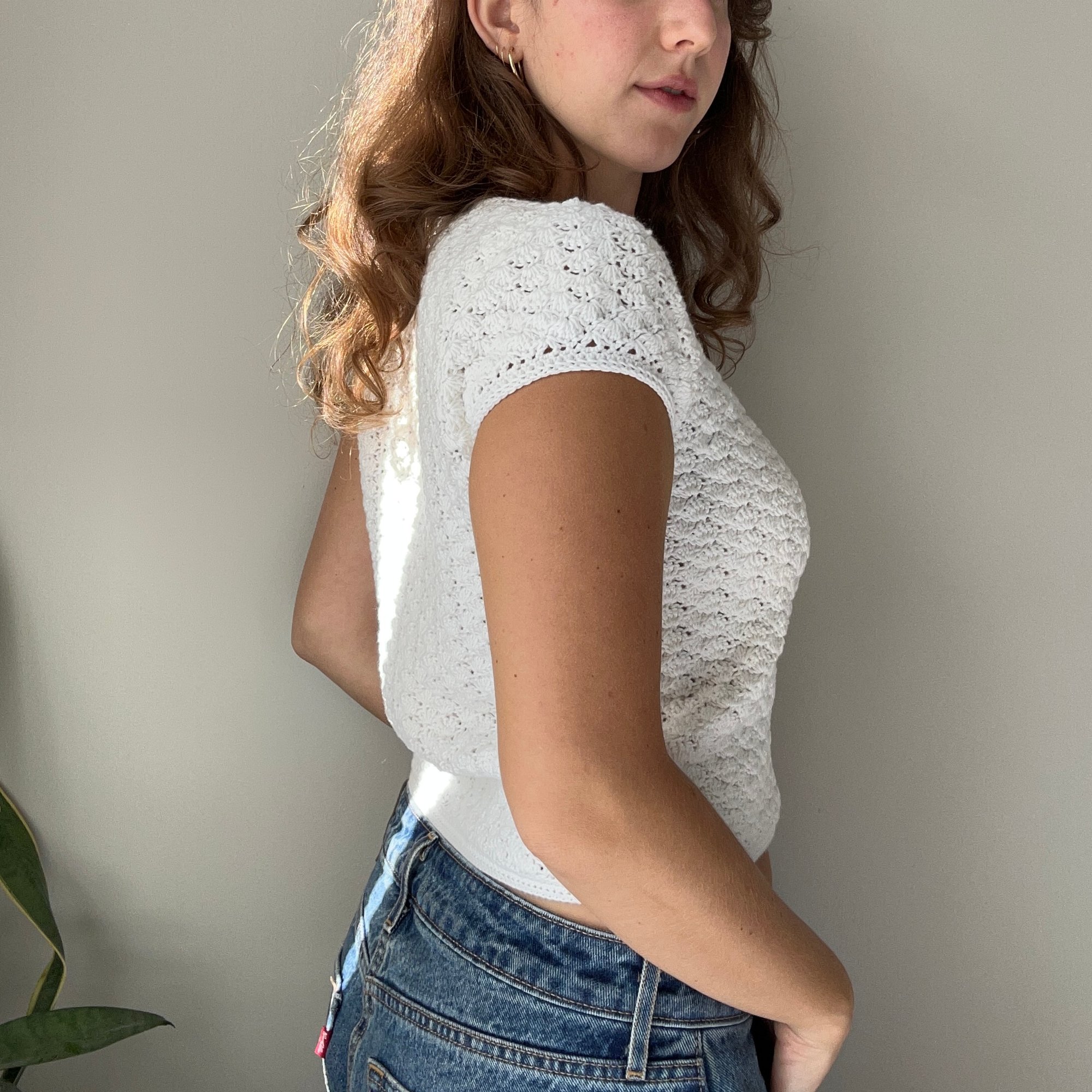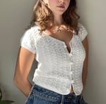 Meet the Blanche Tee, the white t-shirt's sophisticated older sister. A delicate t-shirt cardigan that pairs effortlessly with jeans, shorts, or a skirt. This pattern features minimal sewing, and crochet buttons, for a fun and unique project!