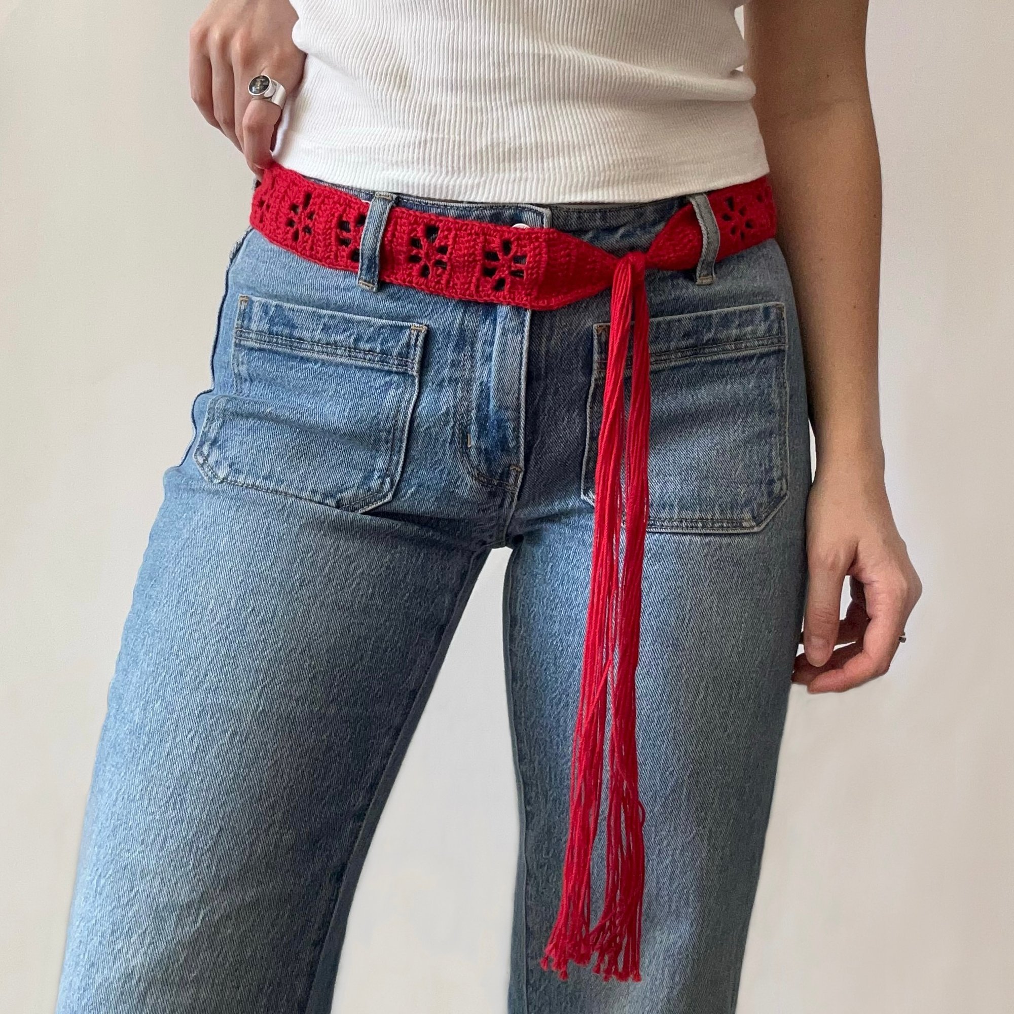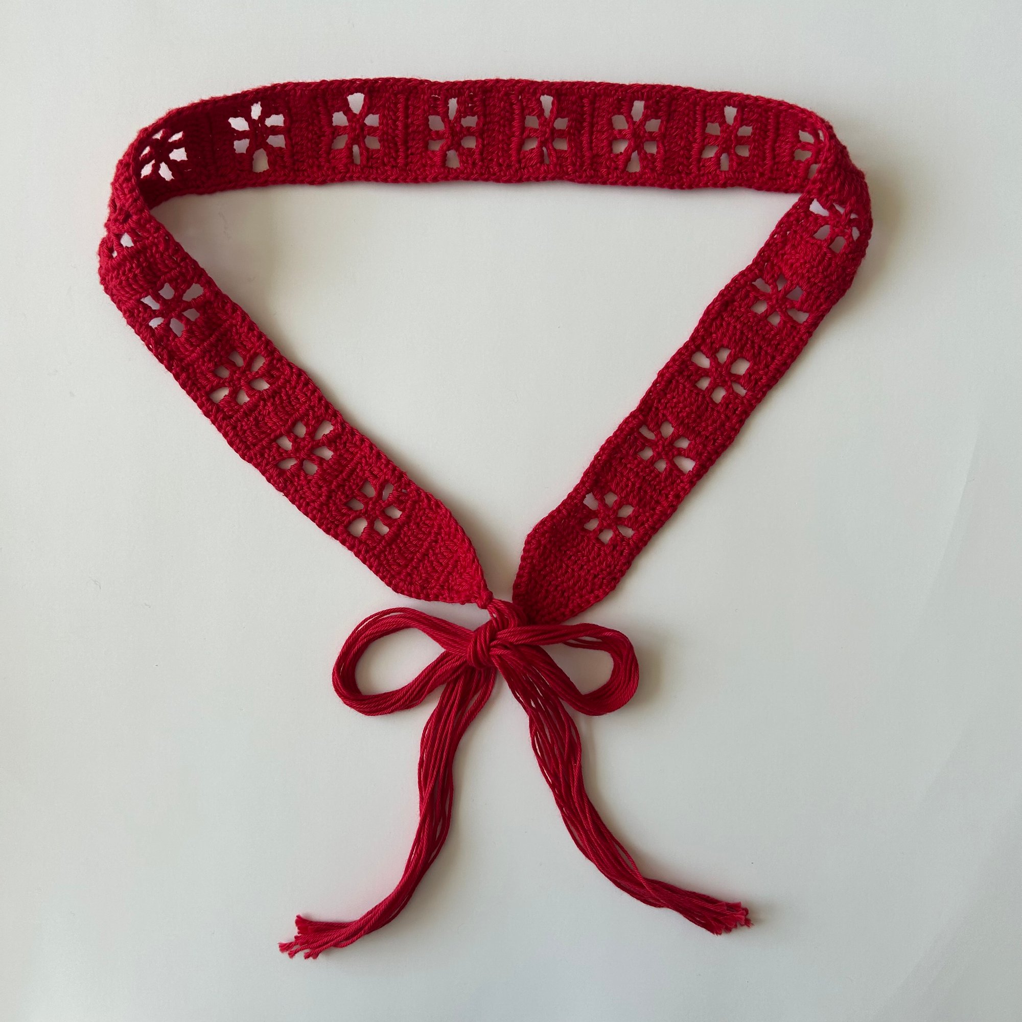 Made in a couple of hours with only 1 skein of yarn, this versatile pattern can be made into a high waisted or low waisted belt, a headband, scarf, neck tie, you name it! Just adjust your measurements accordingly.